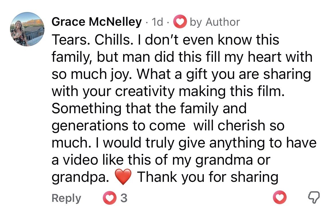 When your grandchildren—or their grandchildren—watch these films decades from now, they won’t just see an image from the past. They’ll feel a connection. They’ll hear the words, wisdom, humor, and personality of someone they may have never met, but will come to know.